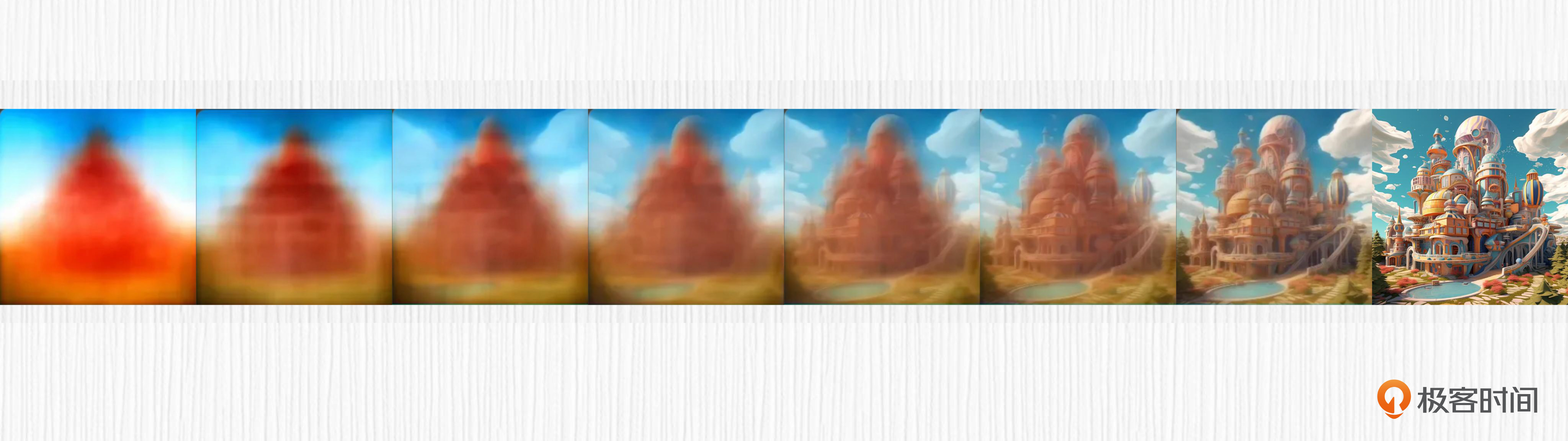 用过Midjourney的同学也许都注意过这样的现象,随着图像生成的进度条推进,图像也是从模糊到清晰。你可以点开下面的图片查看这个过程。