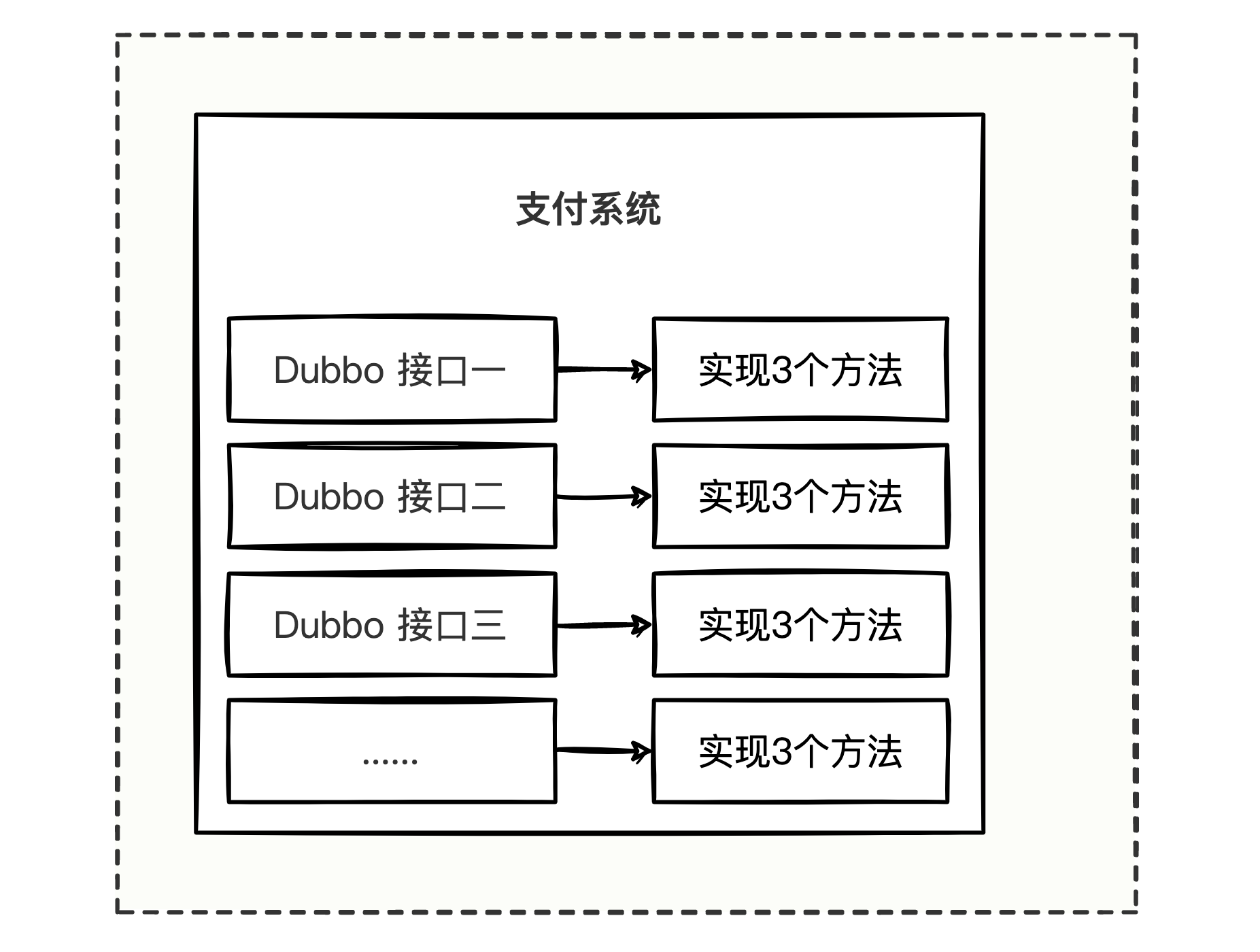 图中的支付系统暴露了一个支付请求的Dubbo接口,支付核心业务逻辑是调用核心支付系统完成,当支付状态翻转为支付成功后,还需要额外做些事情,比如埋点商品信息、短信告知用户和通知物流派件。