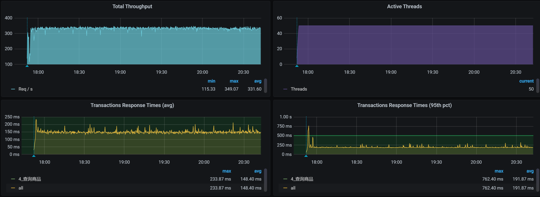 压力场景数据 对于查询商品接口,我们第一次试执行性能场景的结果如下: