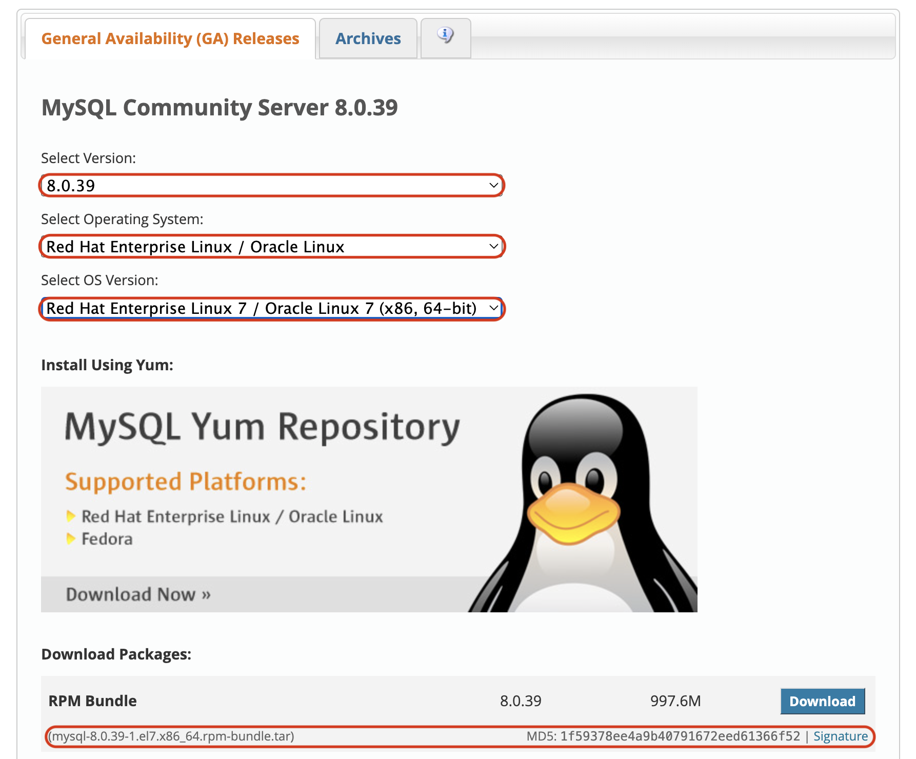 下载mysql-8.0.39-1.el7.x86_64.rpm-bundle.tar,里面包含了安装MySQL需要的所有rpm包。