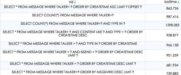 我们可以通过这些接口监控数据库busy、损耗以及执行耗时。针对耗时比较长的SQL语句,需要进一步检查是SQL语句写得不好,还是需要建立索引。