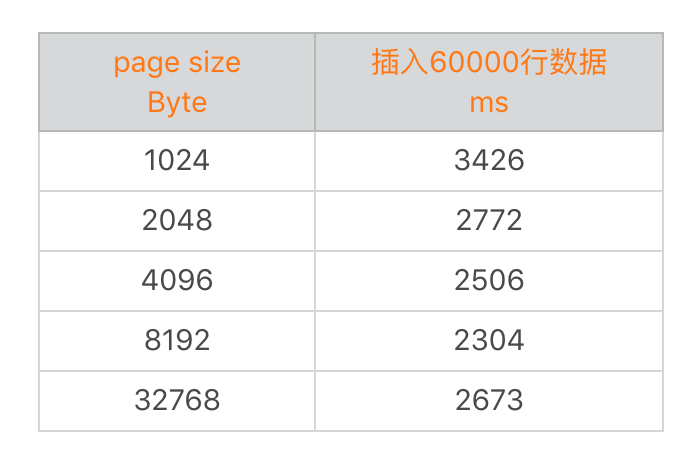 从上表可以看到,增大page size并不能不断地提升性能,在拐点以后可能还会有副作用。我们可以通过PRAGMA改变默认page size的大小,也可以再创建DB文件的时候进行设置。但是需要注意如果存在老的数据,需要调用vacuum对数据表对应的节点重新计算分配大小。