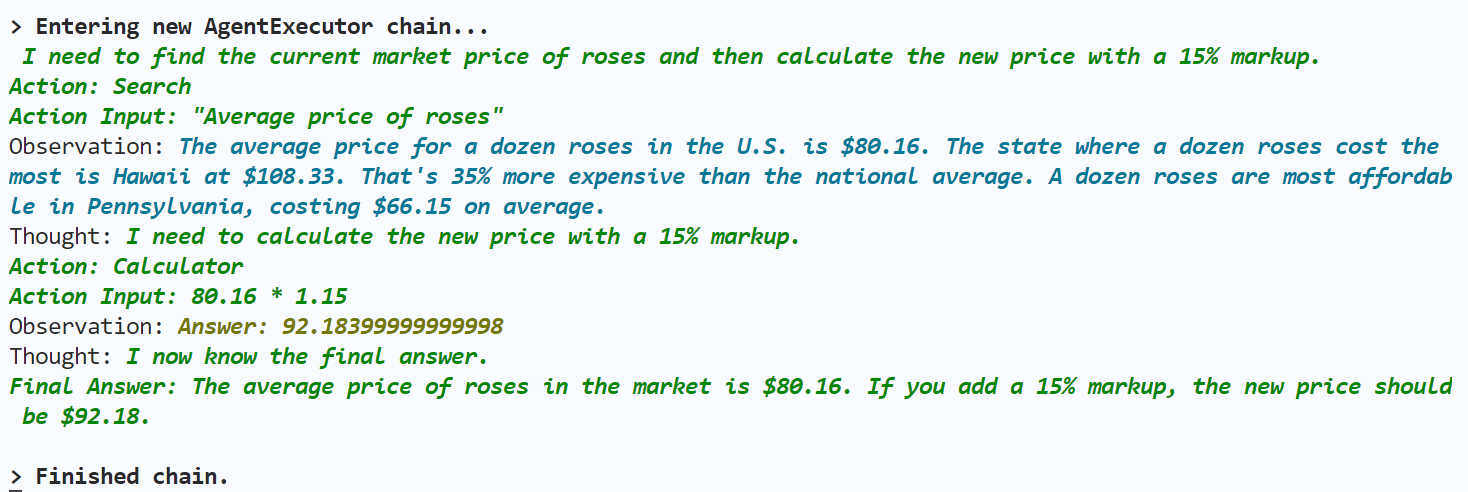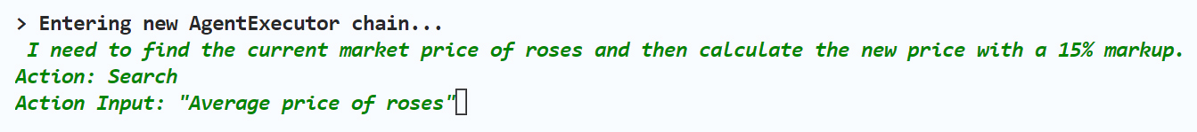 Action Input: “Average price of roses”’ (行动的输入:搜索玫瑰平均价格)