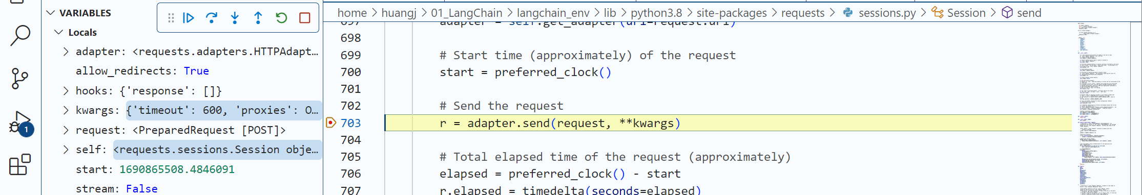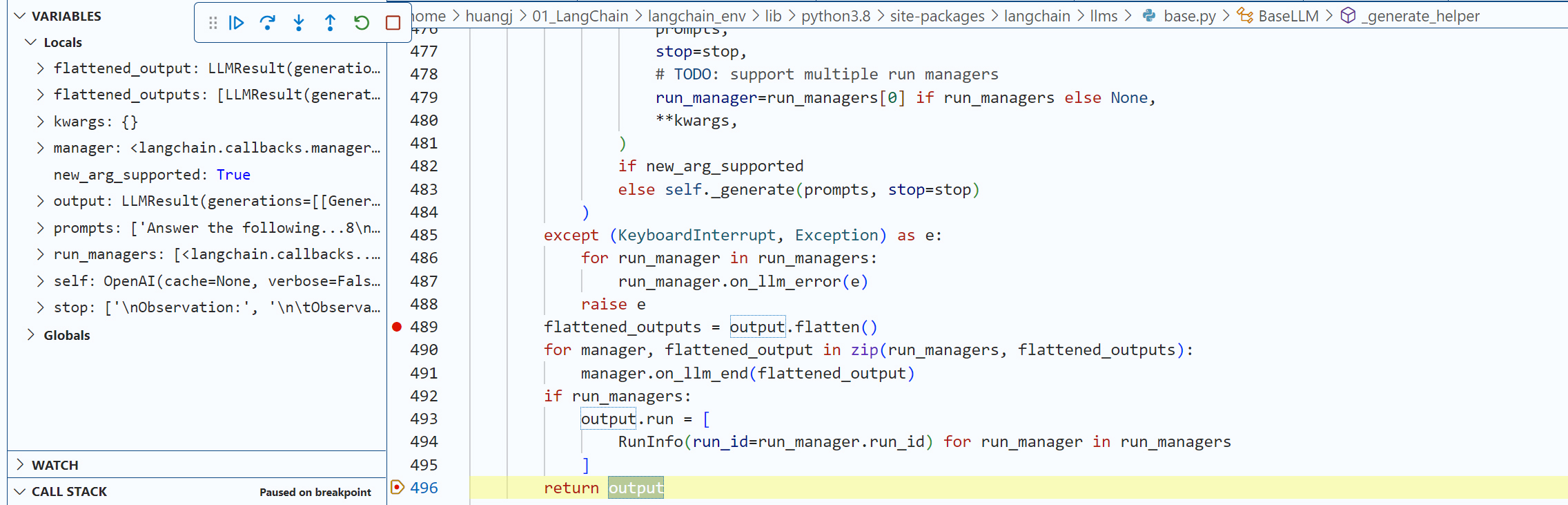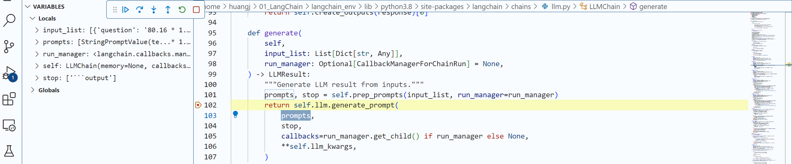 注意:如果使用VS Code,要把launch.json的justMycode项设置为false才可以debug LangChain包中的代码。
