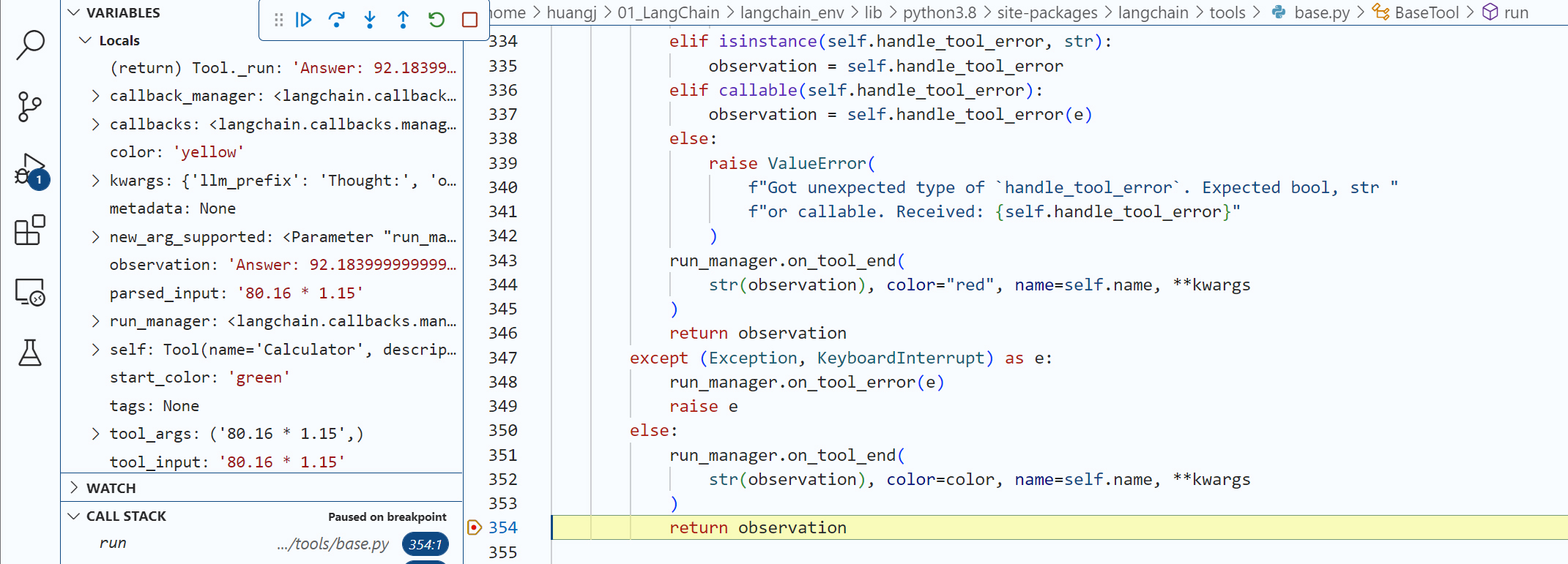 至此,LangChain的BaseTool返回的Observation如下: