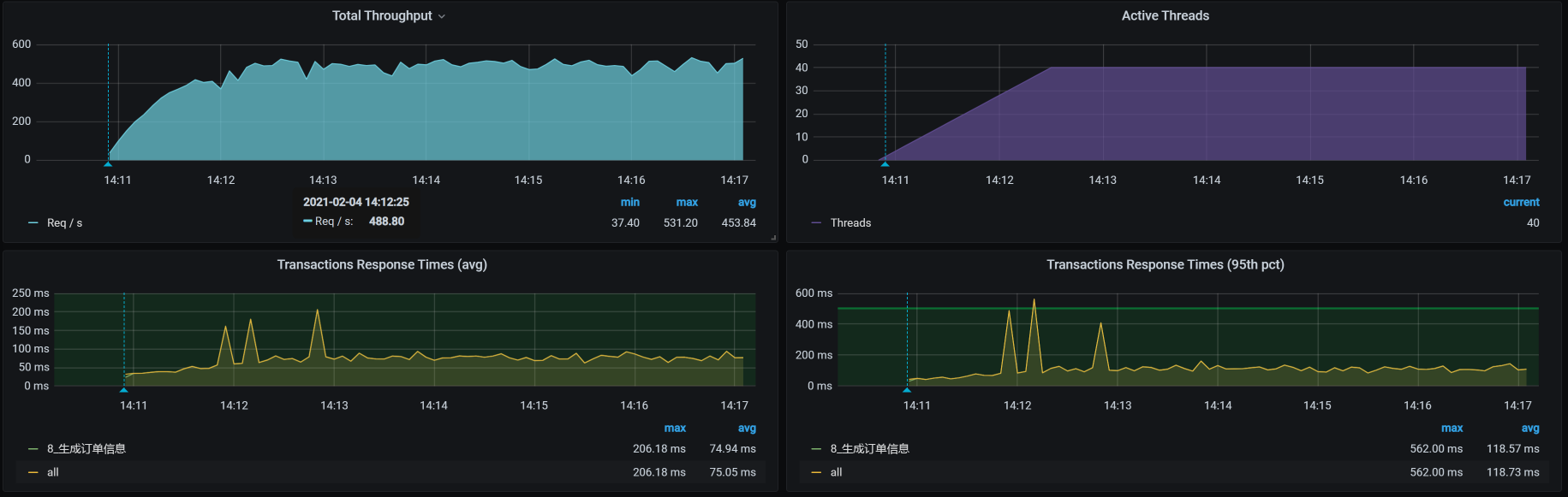 但是,由于系统资源还没有用到上限,我们得先调整一下Tomcat的线程数,把它加大一些,争取让Order应用把硬件资源用起来。
