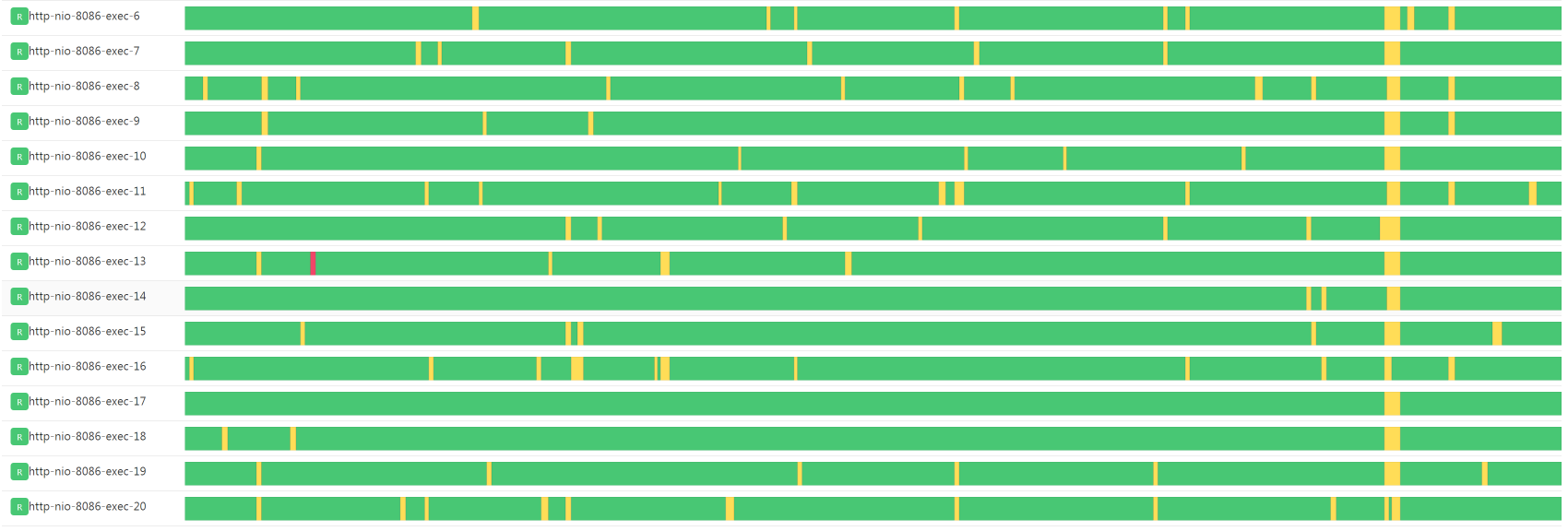 但是,上面我们也确实看到了响应时间消耗在了几个具体的方法上,并且这几个方法并不是一直都消耗这么长的时间,而是有快有慢。