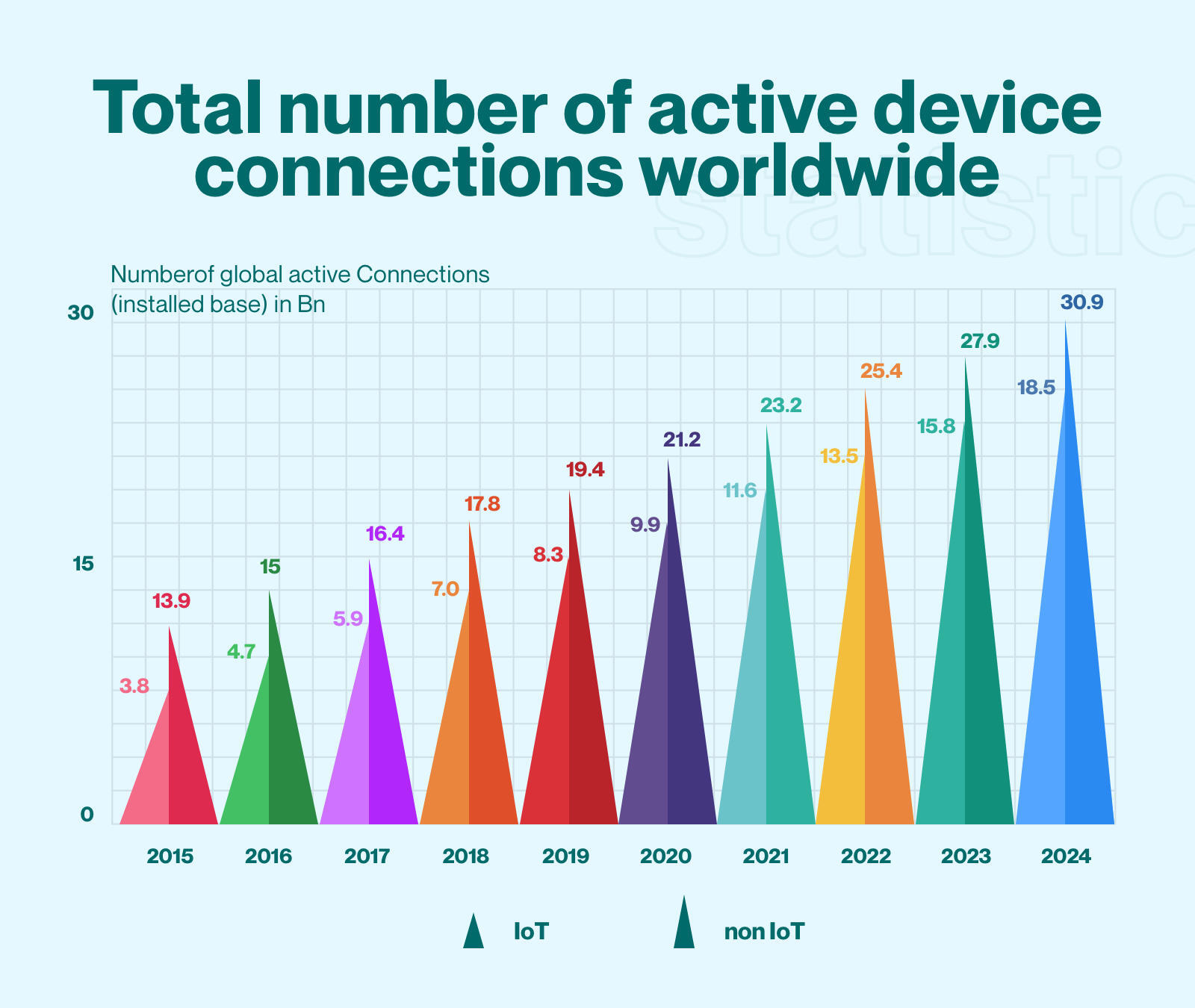 据估算,到2021年底,全球约有348亿台智能设备连接到互联网(其中物联网设备116亿台,非物联网设备232亿台),平均每个人就有5台设备。
