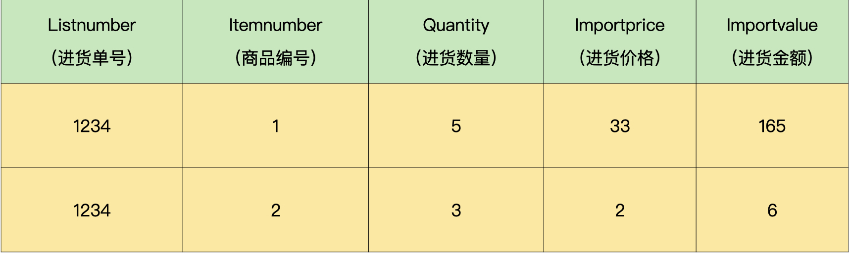 这里我们要用到进货单头表(demo.importheadl)、进货单明细表(demo.importdetails)、库存表(demo.inventory)和商品信息表(demo.goodsmaster)。