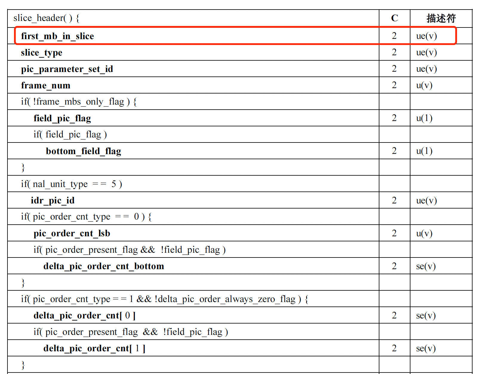 - 如果first_mb_in_slice的值不等于0,就代表了当前Slice不是一帧的第一个Slice。