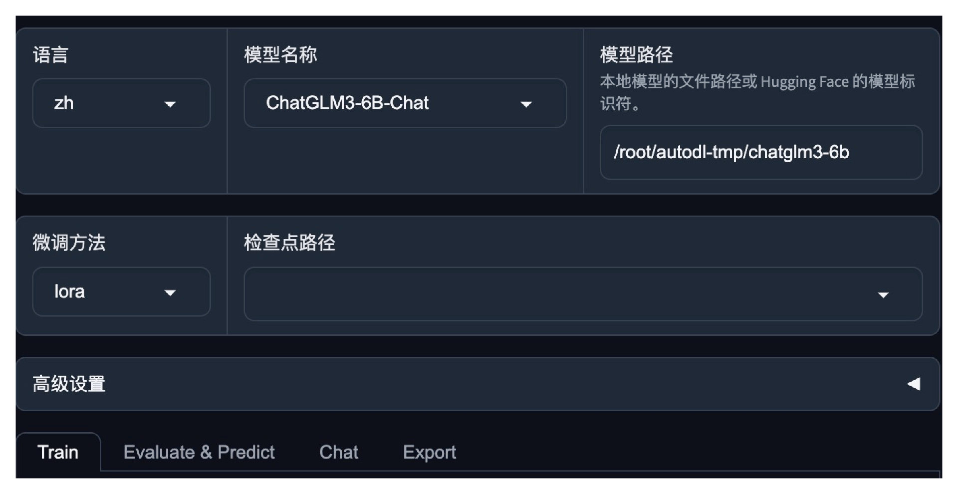 准备好数据之后,我们打开微调界面。