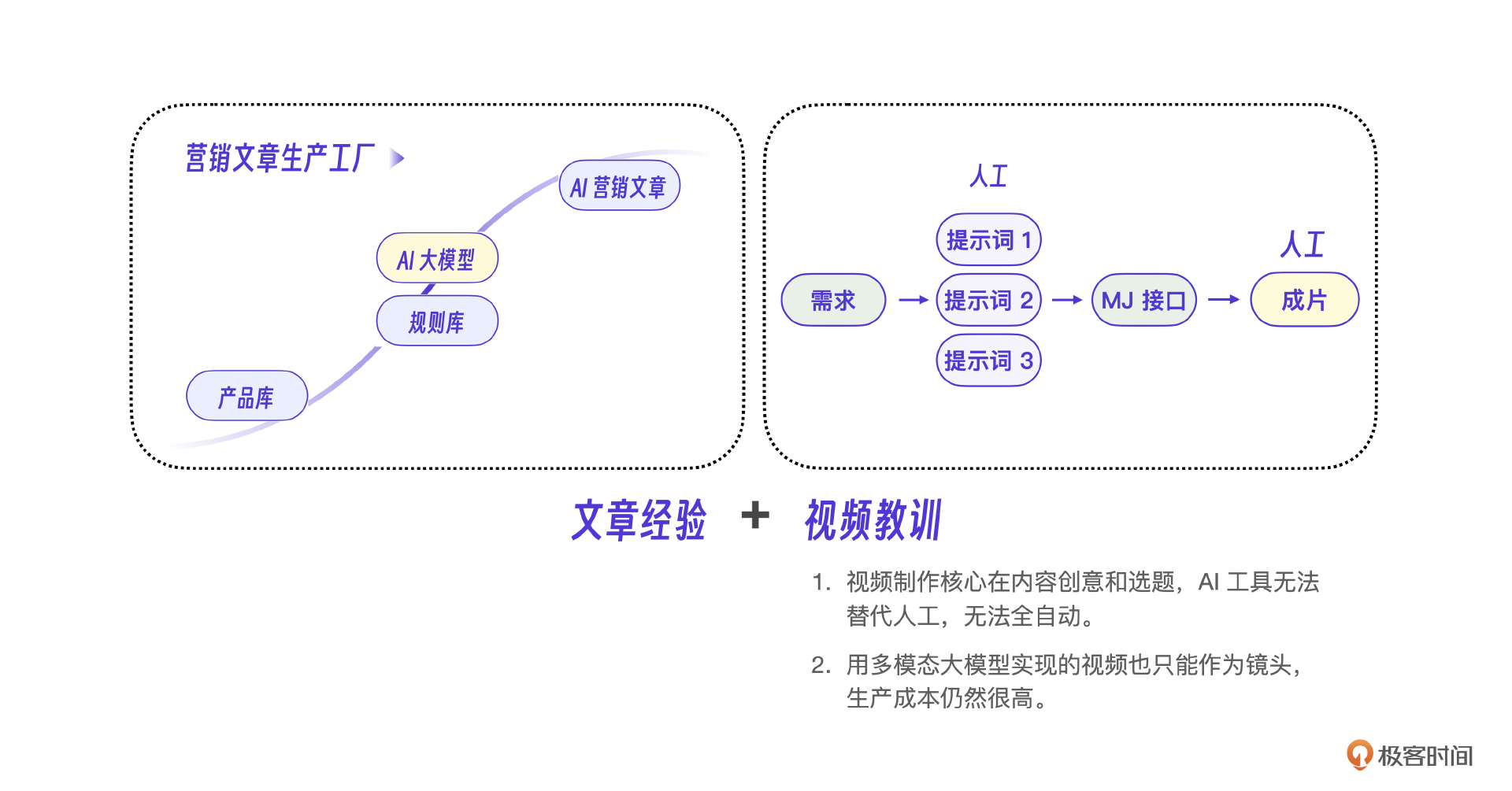 我会在这节课着重分析营销文章的部分,分享向量数据库+微调+大模型三者之间的配合方式。同时,复盘图片视频AIGC产品的踩坑点。
