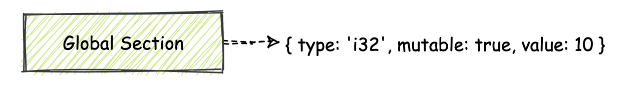 Global Section 的 ID 为 6。同样地,从名字我们也可以猜到,这个 Section 中主要存放了整个模块中使用到的全局数据(变量)信息。这些全局变量信息可以用来控制整个模块的状态,你可以直接把它们类比为我们在 C/C++ 代码中使用的全局变量。