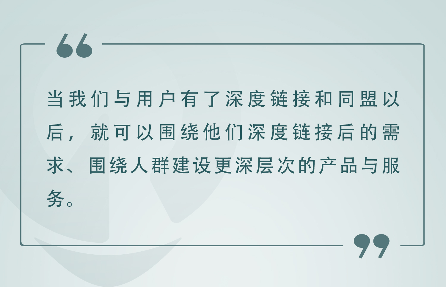 这只是我们计划的第一步,当我们与用户有了深度链接和同盟以后,就可以围绕他们深度链接后的需求、围绕人群建设更深层次的产品与服务。