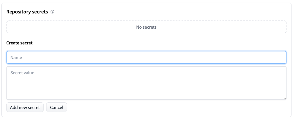 在Name这里输入 OPENAI_API_KEY,然后在Secret value里面填入你的OpenAI的密钥。