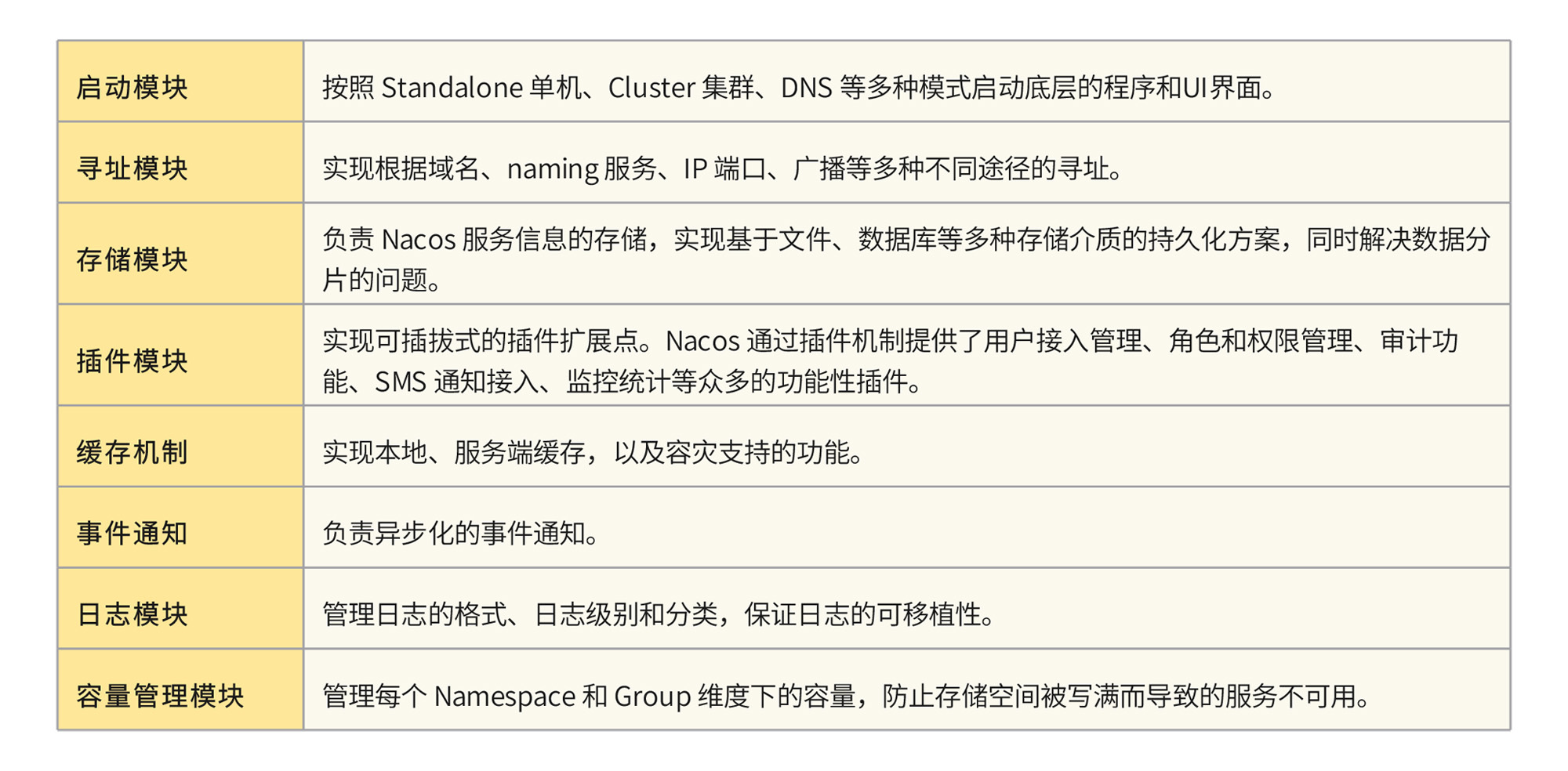 Nacos还有一个相当重要的模块:Nacos Core 模块。它可以提供一系列的平台基础功能,是支撑Nacos上层业务场景的基石。我挑选了几个Nacos Core中包含的重要功能,你可以看一下。