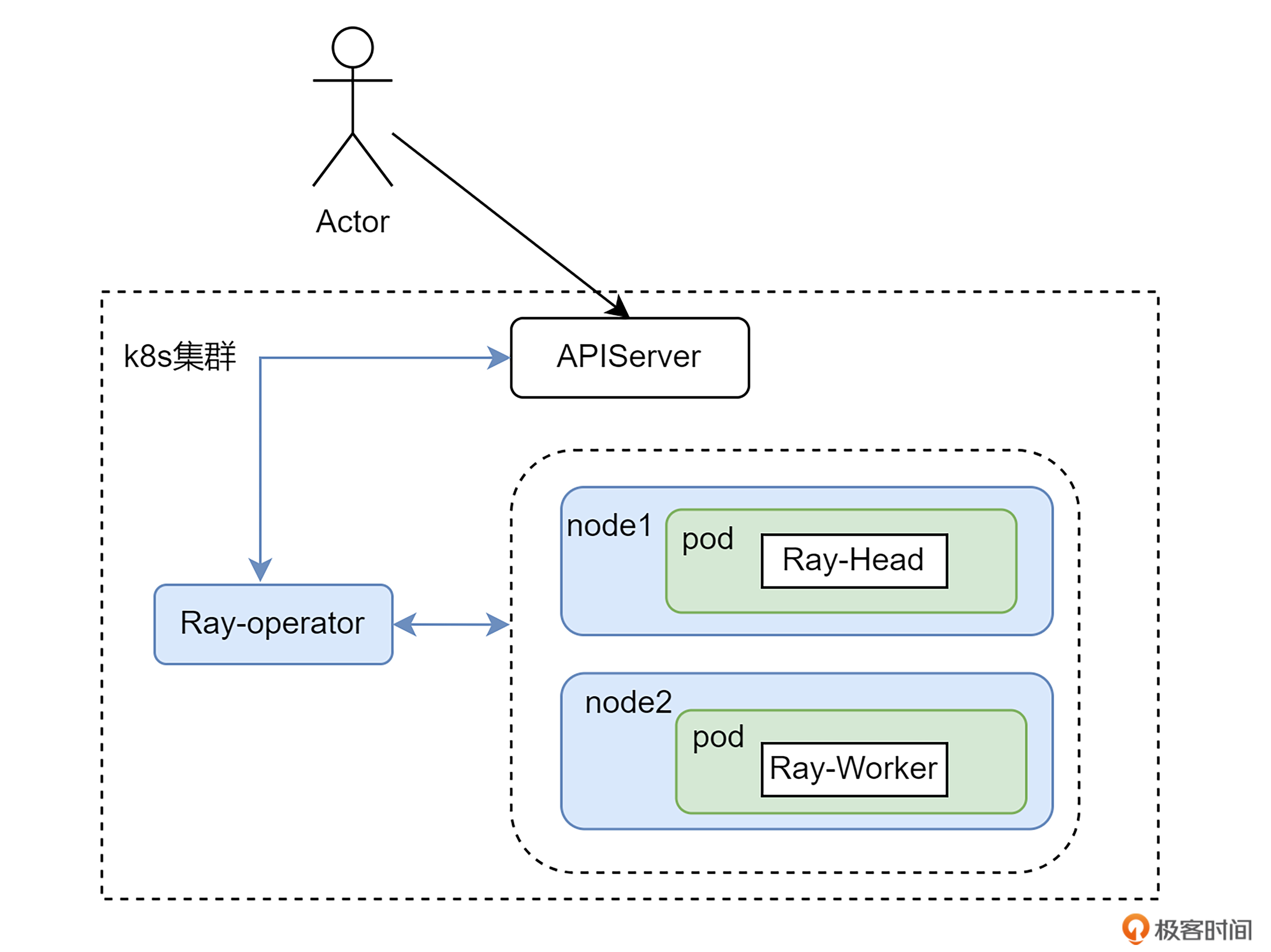 Ray-Operator 是 KubeRay 项目中的核心组件,负责在 Kubernetes 集群中创建和管理 Ray 集群。它通过监听 RayCluster、RayJob 和 RayService 等 CRD 的变化,自动化地处理 Ray 集群的部署、扩缩容和故障恢复等任务。Ray-Operator 使得用户能够以声明式的方式管理 Ray 集群,简化了集群的运维工作。