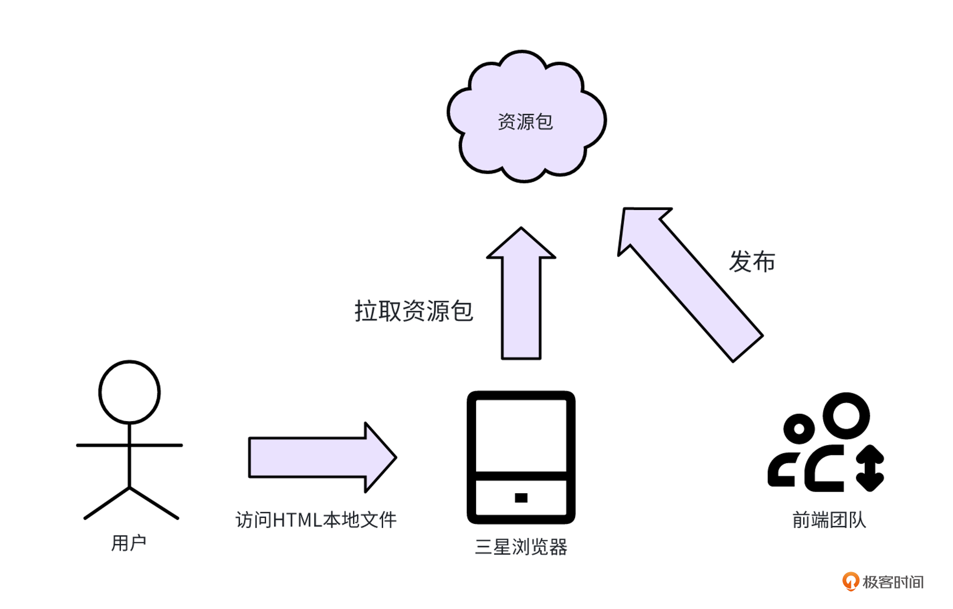 三星浏览器拿到资源包后,会解压并把前端资源保存在用户的手机文件系统中。当用户打开浏览器时,浏览器就可以直接打开这个本地的HTML文件。