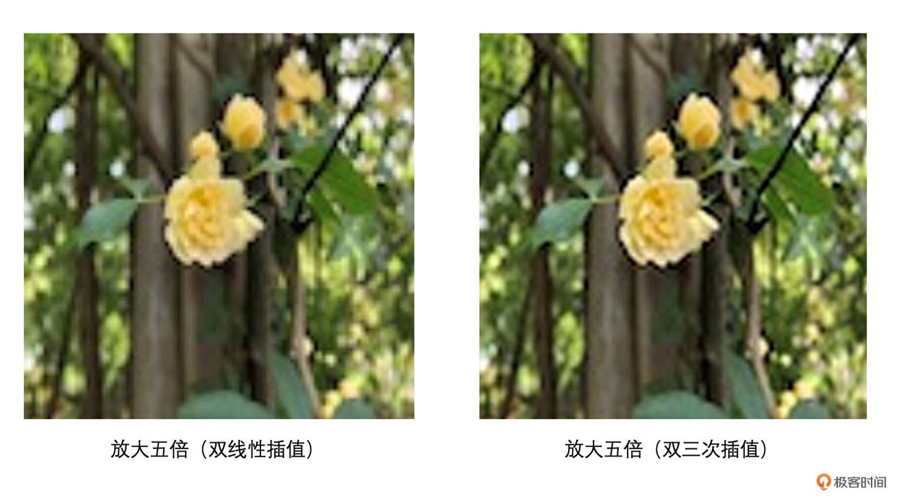 双线性插值相比最近邻插值运算要多一些,因此运行时间要长一些,但是相比而言,插值之后图像效果会好于最近邻插值。