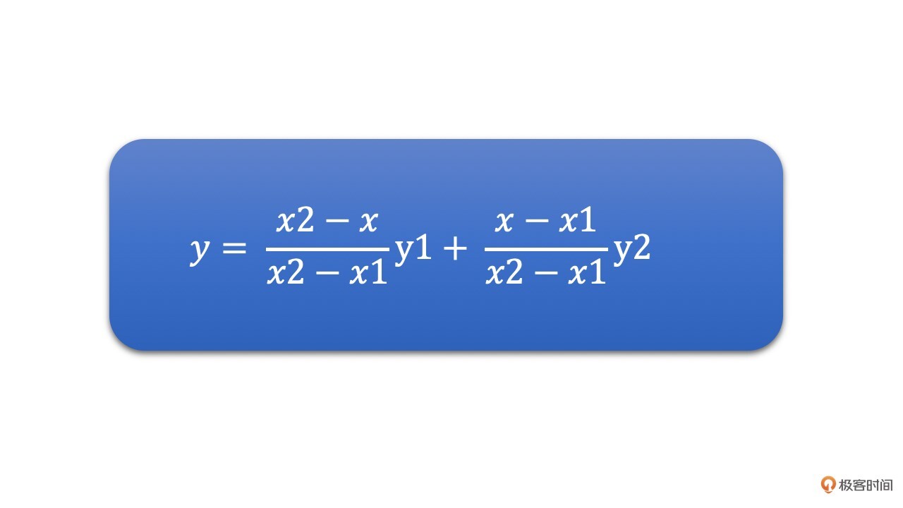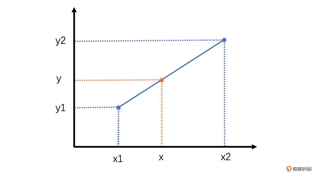 比如,如下图所示,已知 (x1,y1) 与 (x2,y2)两个点,需求得x对应的y值。