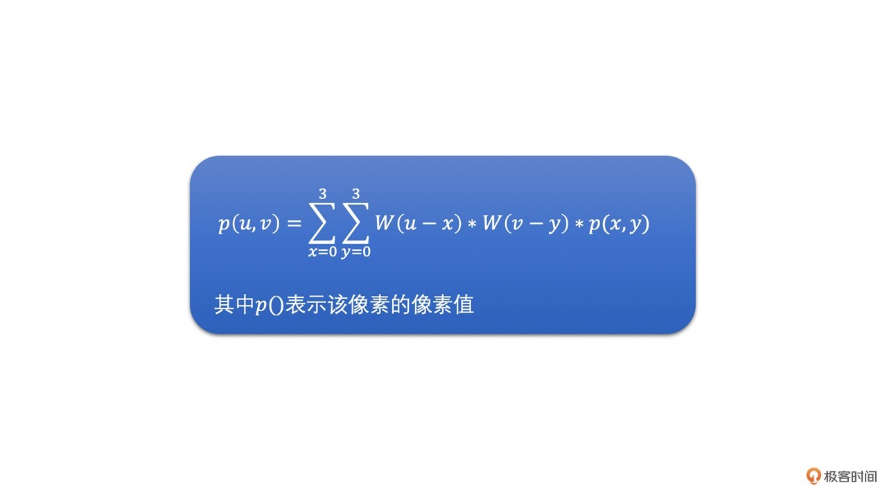 双三次插值的权重值是分水平和垂直两个方向分别求得的,计算公式是一样的,都是上面这个公式。对于周围16个点中的每一个点,其坐标值为(x,y),而目标图像中的目标像素在原图像中的映射坐标为p(u,v)。那么通过上面公式可以求得其水平权重W(u - x),垂直权重W(v - y)。将W(u - x)乘以W(v - y)得到最终权重值,然后再用最终权重值乘以该点的像素值,并对16个点分别做同样的操作并求和,就得到待插值的像素值了。公式如下: