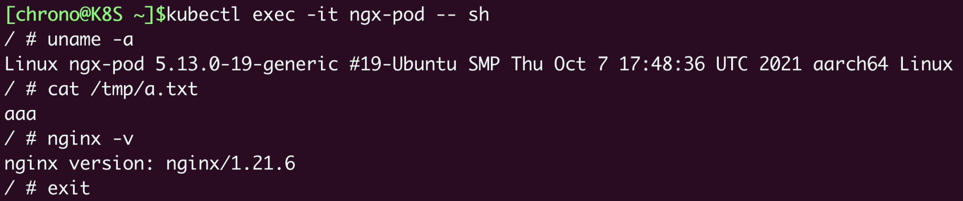 1 | kubectl exec -it ngx-pod -- sh |