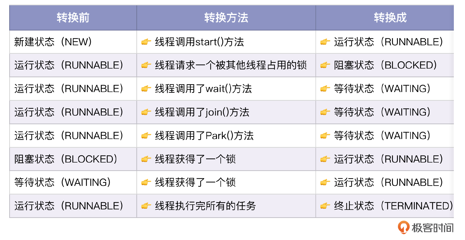 你可以看一下线程状态的转换。