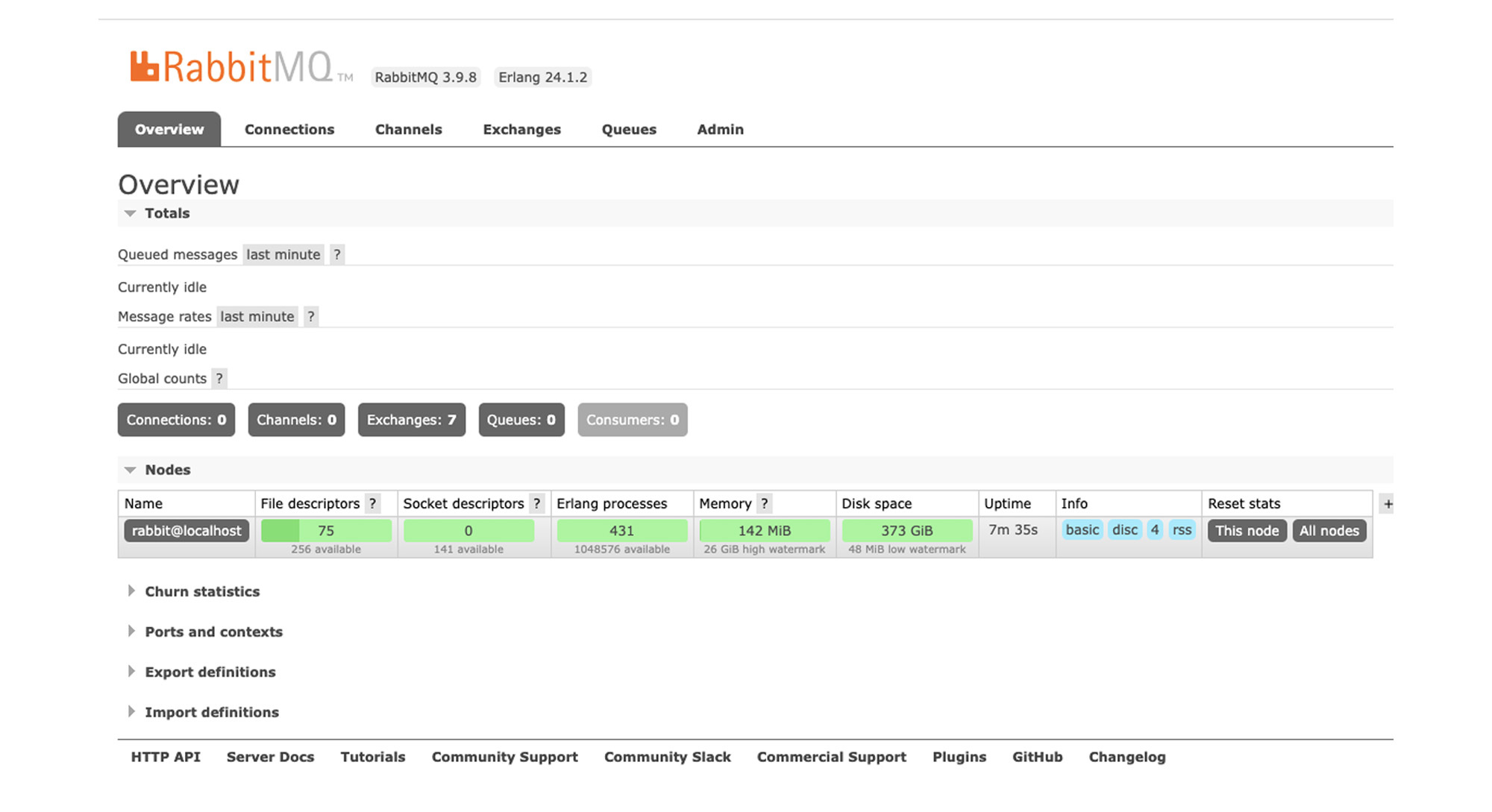 我本地安装的RabbitMQ版本是3.9.8,这里我推荐你直接安装RabbitMQ最新的稳定版本,因为某些RabbitMQ的早期版本缺少必要的插件支持,如果你已经安装了较早年代的RabbitMQ,可以趁这个机会替换成最新版。