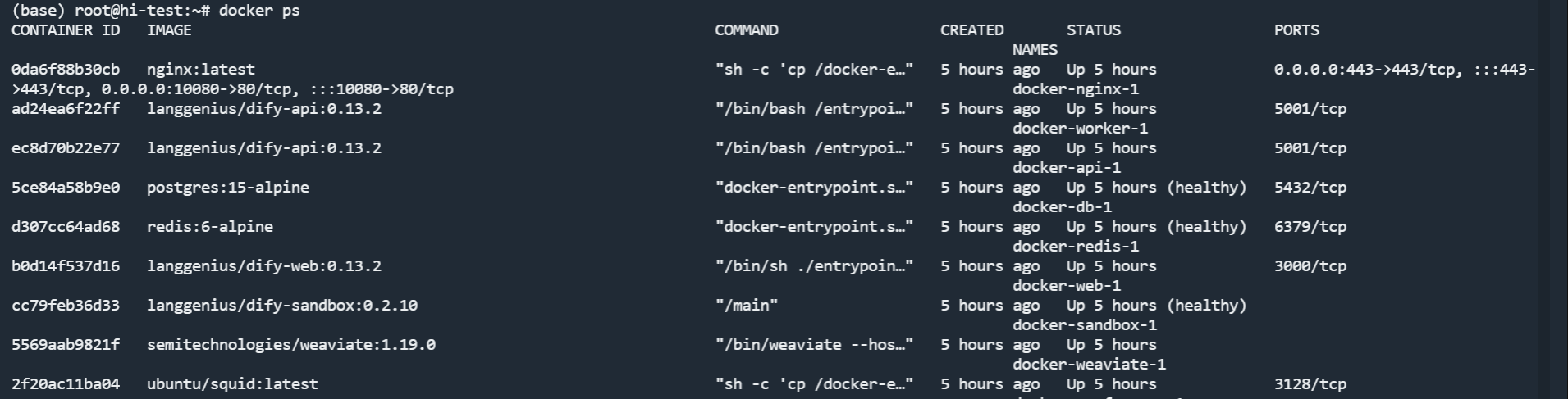 完成后执行以下命令查看是否容器都已成功拉起: