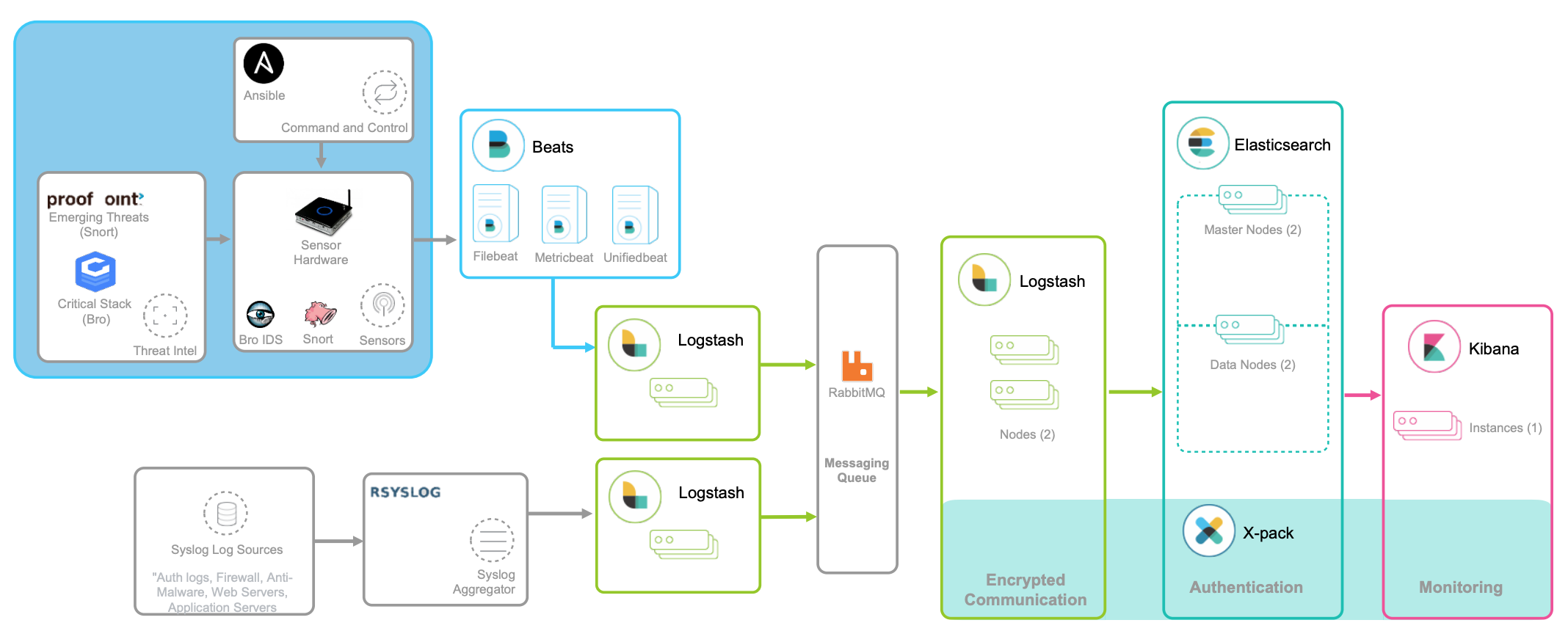 - Logstash 负责对从各个日志源采集日志,然后进行预处理,最后再把初步处理过的日志,发送给 Elasticsearch 进行索引。