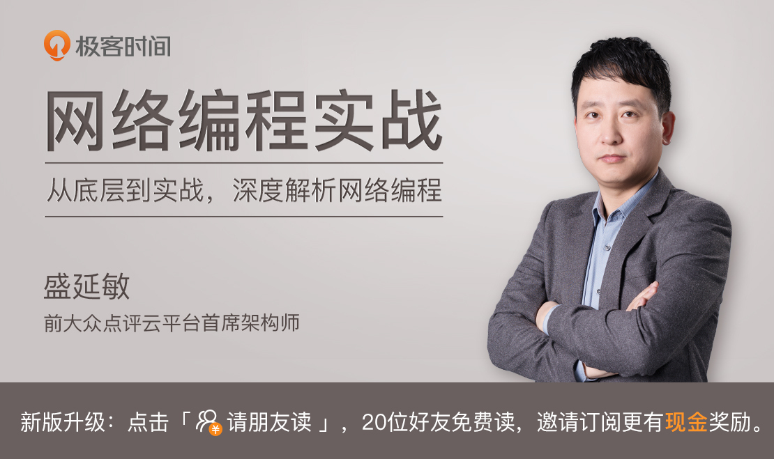 你好,我是盛延敏,欢迎你的加入。在接下来的几个月时间里,我会和你一起深入学习网络编程。网络编程是一个高度重视实战的内容模块,工作这么多年,我一直都在近距离与它打交道。