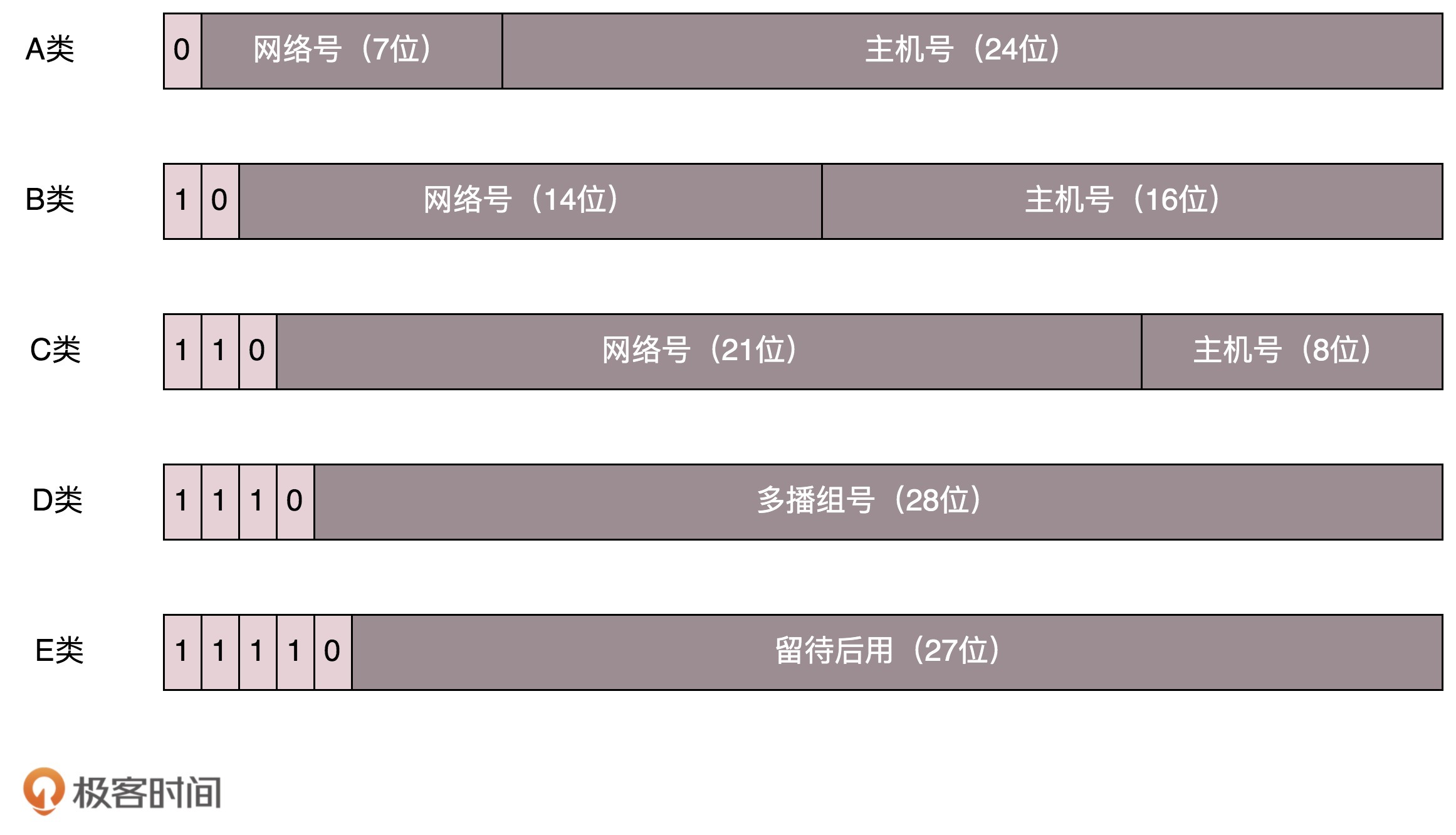 本来32位的IP地址就不够,还被分成了5类。现在想想,当时分配地址的时候,真是太奢侈了。