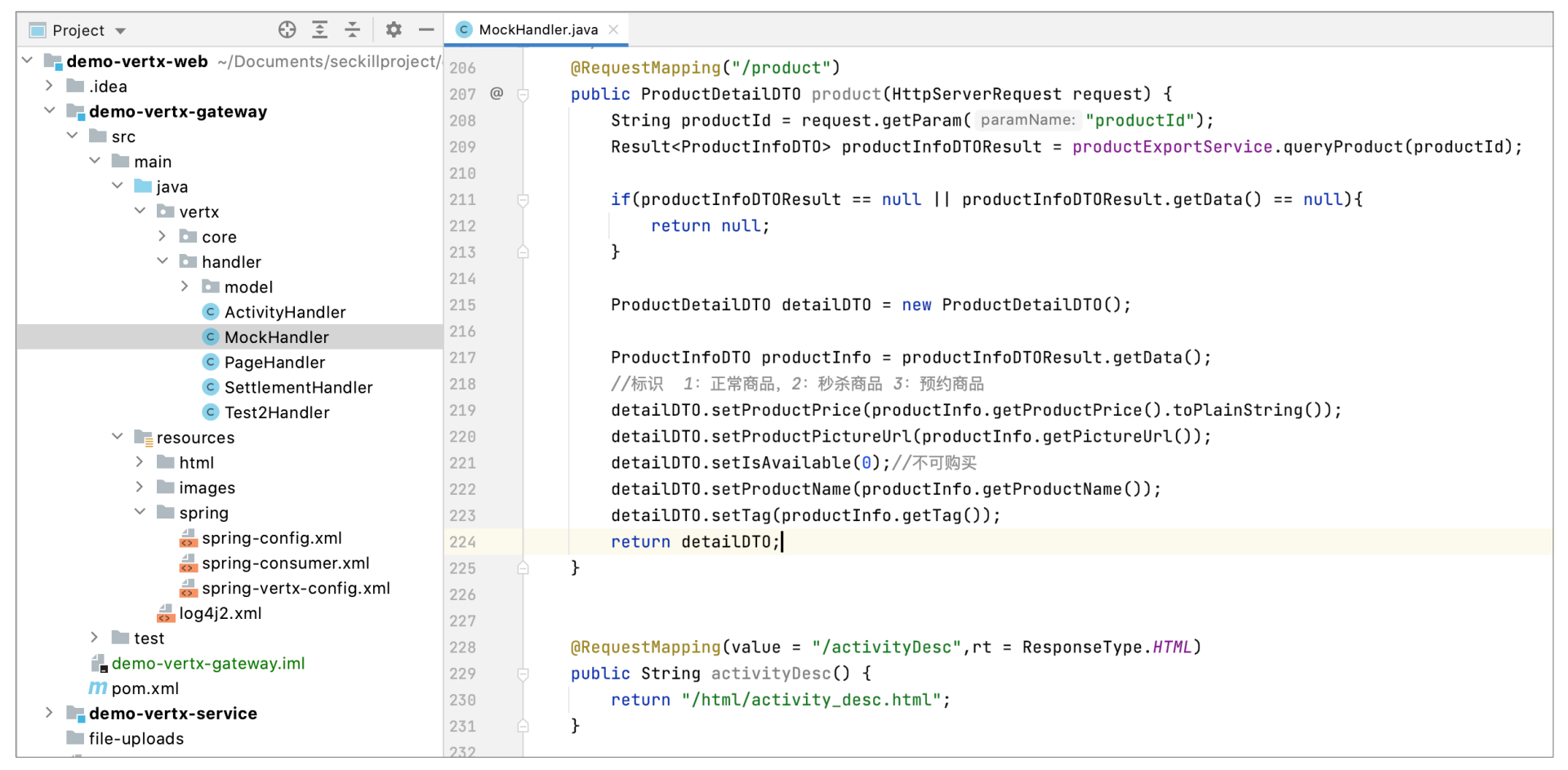 那这样,咱们的demo-vertx-web项目就算搭建完成了,之后可以按照以前的测试方式,从商详页进入到结算页然后完成下单,测试整个秒杀流程,这里就不再复述了。