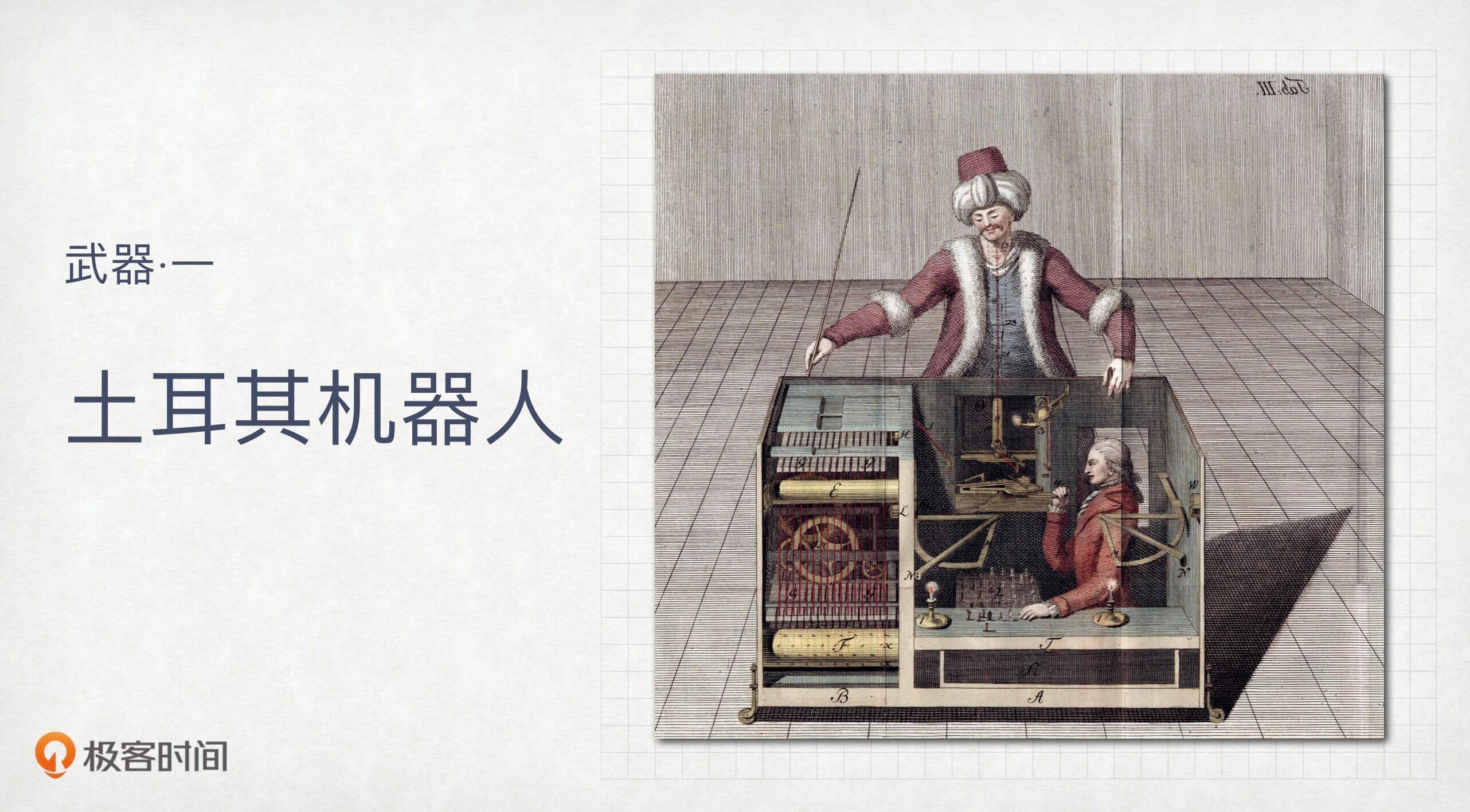 这个说法来源于1770年出现的一个骗局,一个叫沃尔夫冈·冯·肯佩伦(Wolfgang von Kempelen)的人为了取悦奥地利女皇玛丽娅·特蕾莎(Maria Theresia),“制造”了一个会下国际象棋的机器人。这个机器人的外表是一个身着土耳其传统衣饰、叼着水烟袋的木偶,端坐棋盘前。