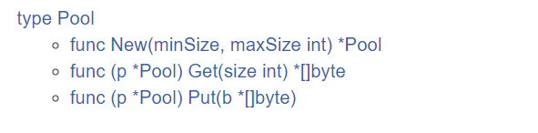 这是fasthttp作者valyala提供的一个buffer池,基本功能和sync.Pool相同。它的底层也是使用sync.Pool实现的,包括会检测最大的buffer,超过最大尺寸的buffer,就会被丢弃。