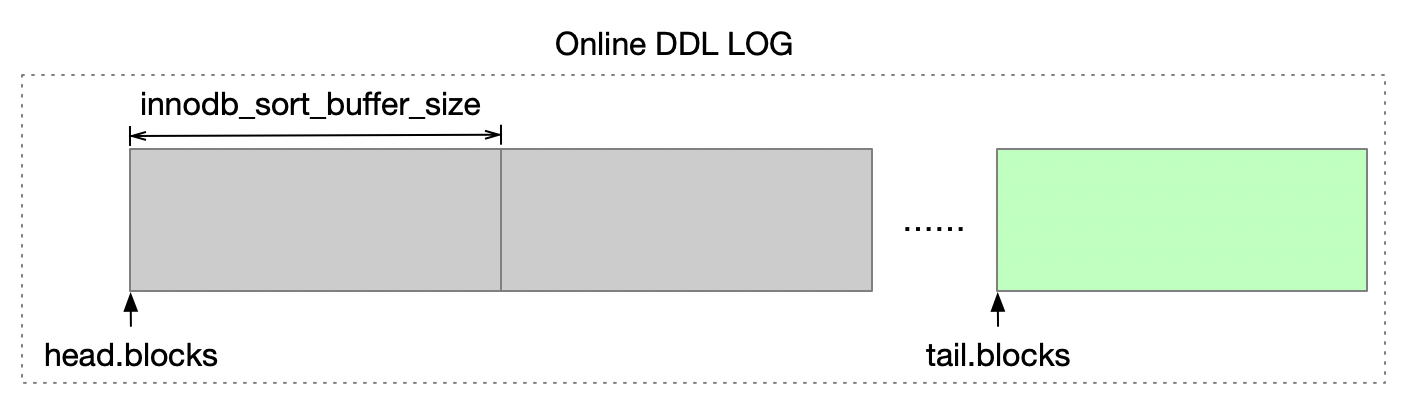 InnoDB在线变更日志按innodb_sort_buffer_size的设置,分为多个块。在应用在线变更日志时,如果是在应用最后一个日志块中的记录,需要获取主键或索引的锁。