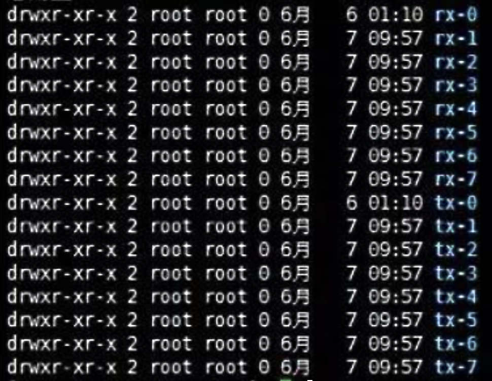 我们知道,网络的接收是靠队列来缓存数据的,所以我们接下来得去查一下网络接收的队列有多少个。我们可以通过/sys/class/net/<网卡名>/queues/路径,查看到这个网络队列: