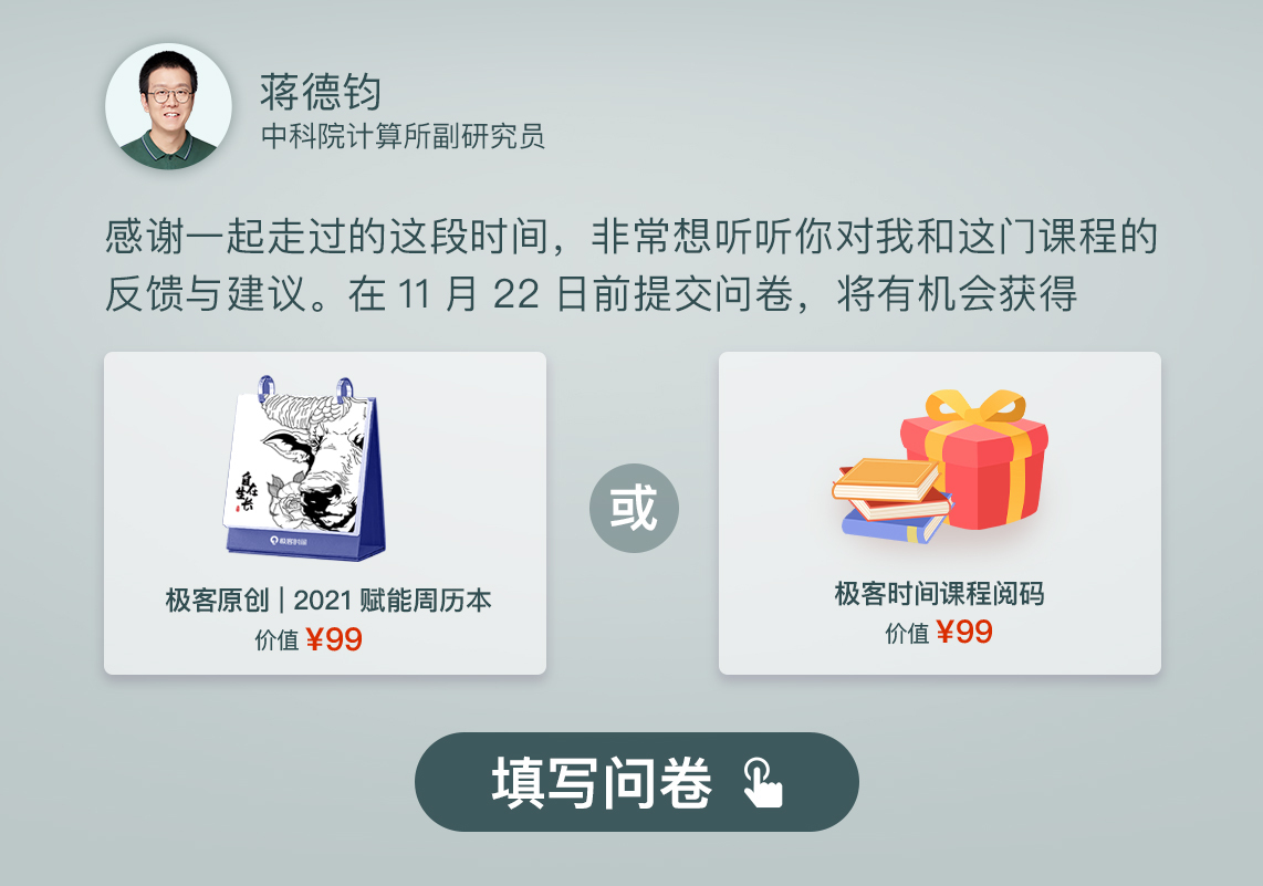 最后的最后,我还给你准备了一份毕业问卷,希望你能花两三分钟填写一下,我非常期待能听到你对这门课的反馈。