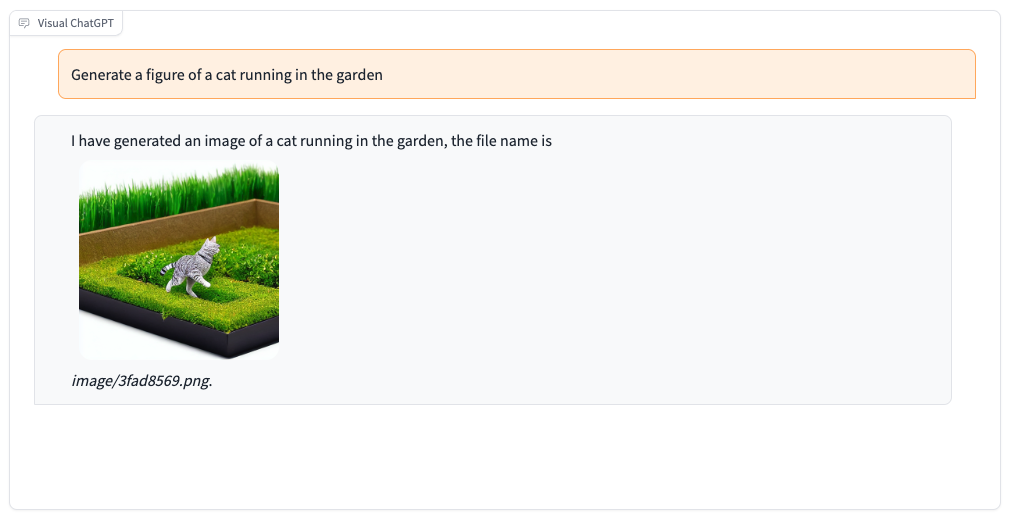 我们先让Visual ChatGPT画一幅小猫在花园里奔跑的图片。