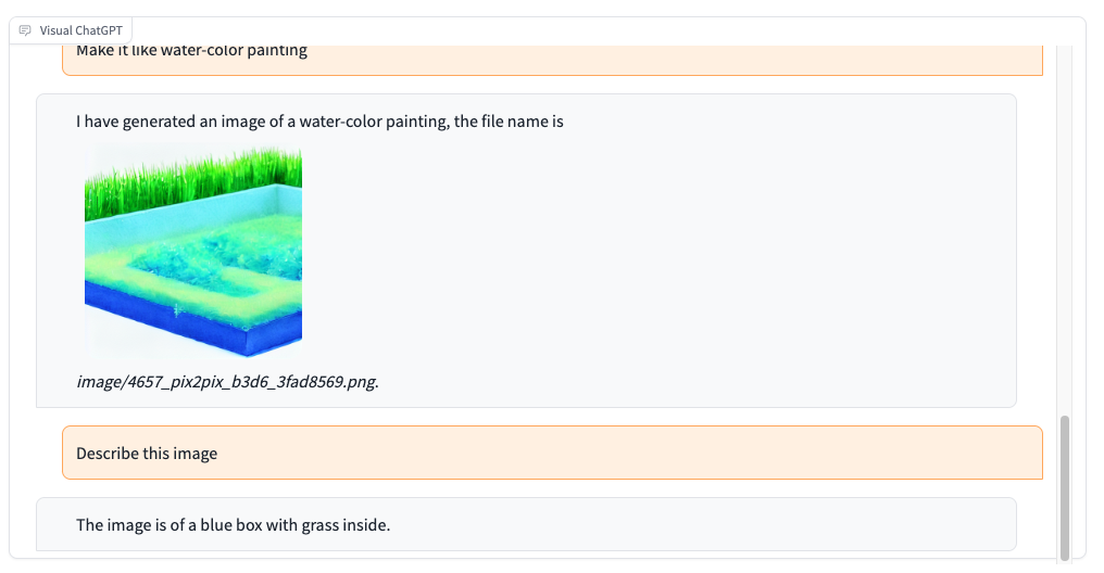 最后我们让Visual ChatGPT描述一下图片的内容。