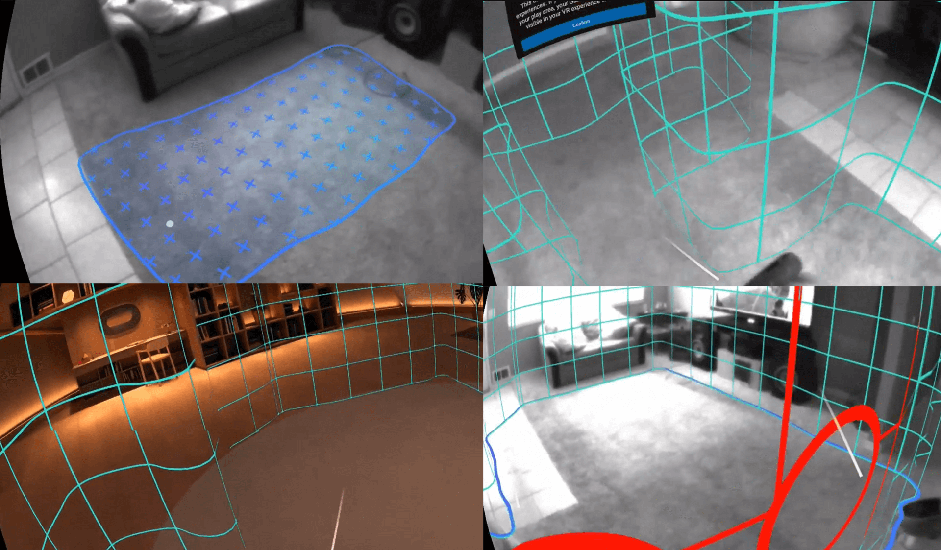 因为用户在虚拟环境中完全和真实世界隔离,如同是现实世界的盲人一般。我们肯定不希望用户在VR游戏里面挥动激光剑的时候,毫无预兆地重重撞在真实世界的电视上或者门把手上。