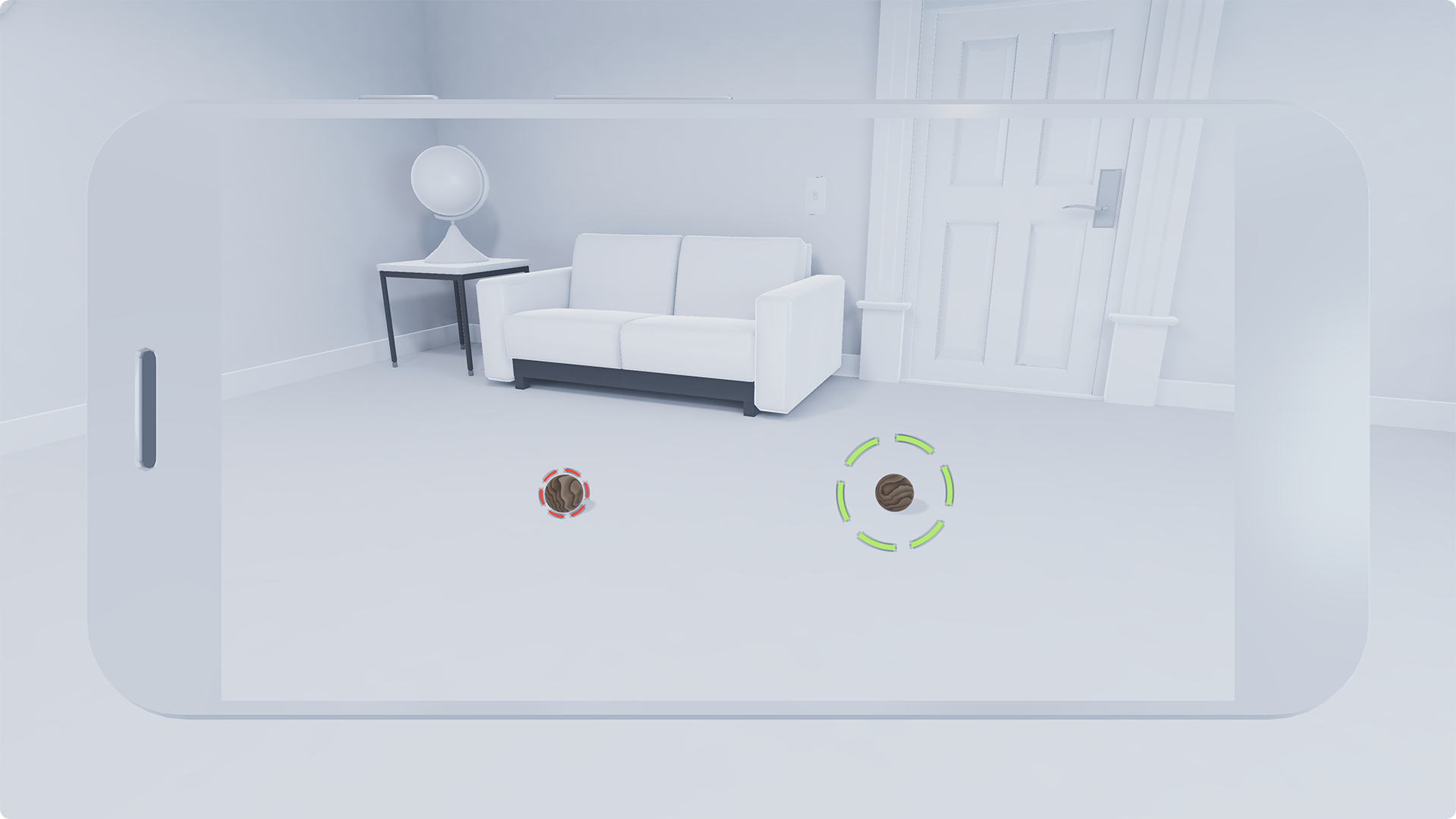 距离对于人们的感知至为重要,因此我们的虚拟元素应避免放在亲密距离之内。如果你希望让用户能清楚看到对象,并易于与之进行互动,放置在个人距离会比较合适。如果是多人互动中的虚拟元素,要默认放在社交距离内,这会让所有人都觉得舒服。同时,在公共空间内放置的虚拟元素必须要简单、清晰且易于识别。