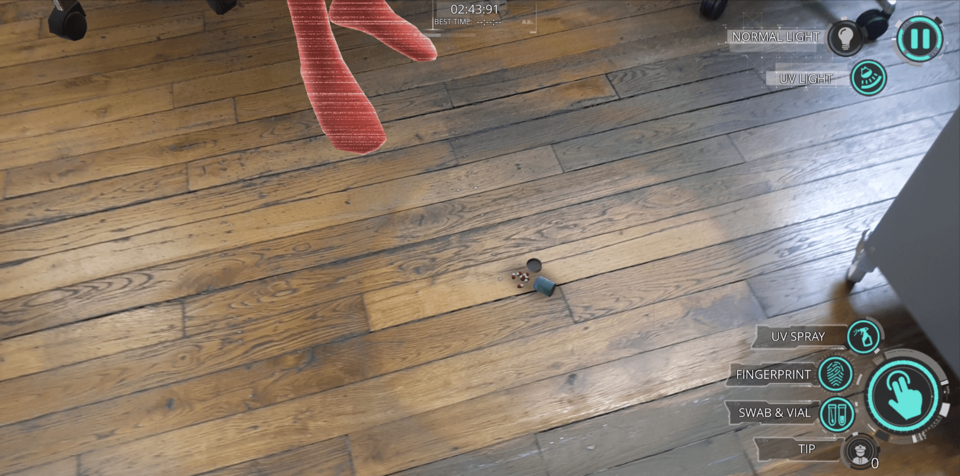 在AR交互体验中,如果现实空间较大或者虚拟物体过于逼真,用户很难找到虚拟元素的位置的时候,要通过某种方式提醒用户虚拟物体的存在。比如下面的这个AR侦探游戏,就使用了一种动效波纹区域作为视觉线索来高亮显示虚拟元素的定位。