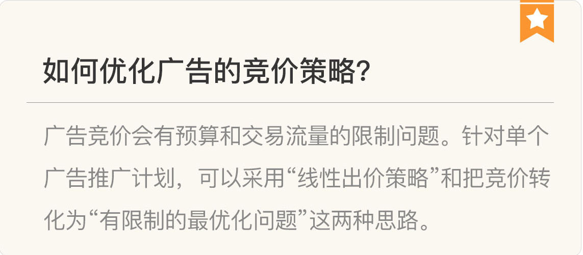 在这个模块,我们一起学习了18篇文章,讨论了5大话题,包括广告系统架构、知名公司的广告点击率预估模型、出价系统、预算等。通过这些点,我们勾勒出了这个领域的主线。希望你能沿着这条线,去做更多探索。