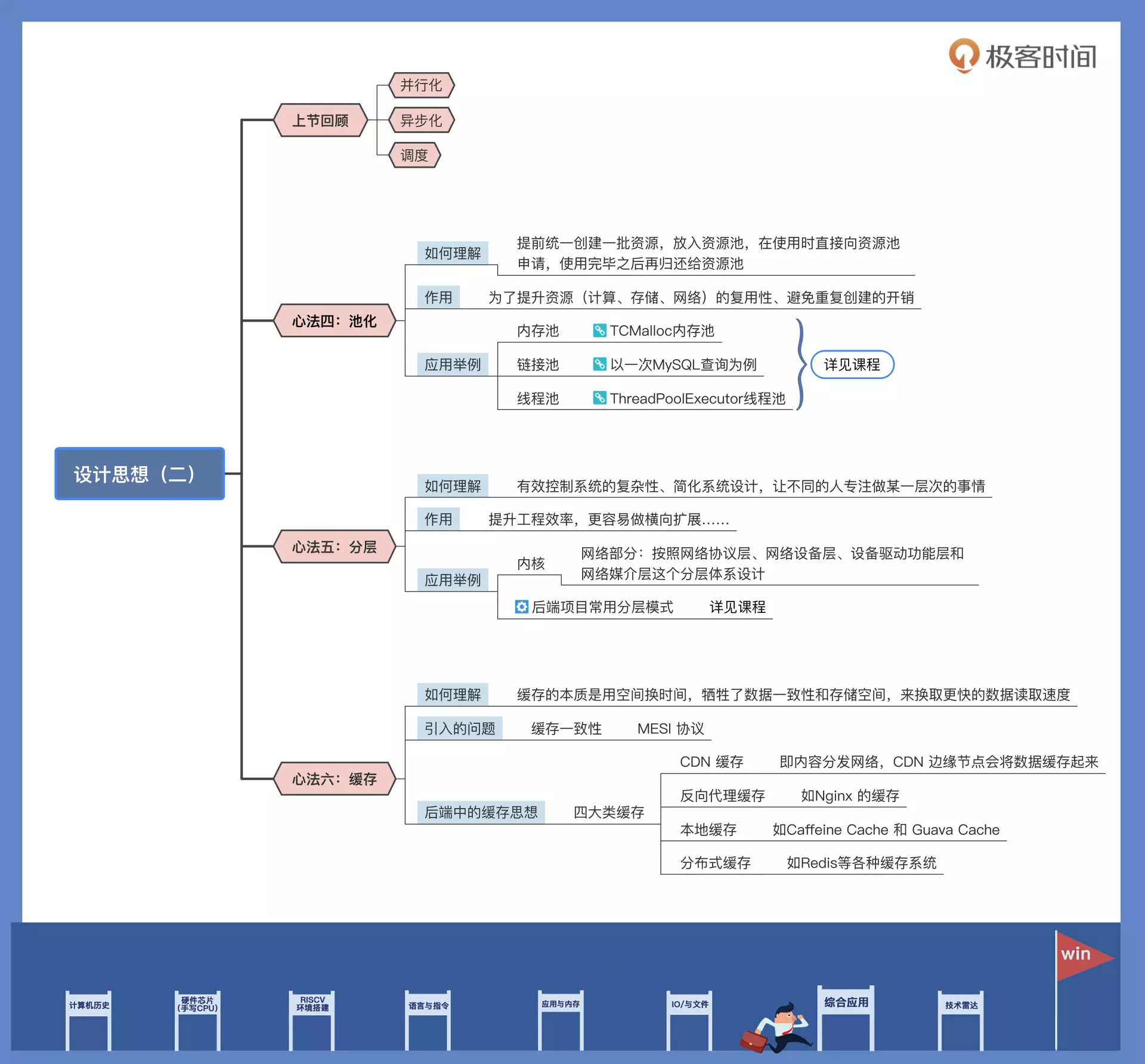 这节课,我们主要学习了池化、分层和缓存这三种思想。我来带你回顾下重点。
