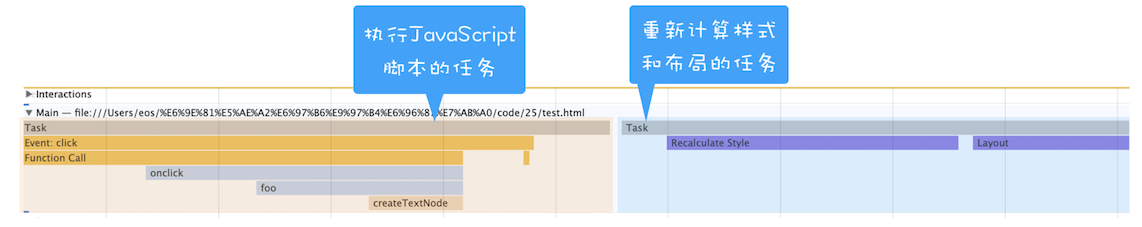 从图中可以看出来,执行JavaScript添加元素是在一个任务中执行的,重新计算样式布局是在另外一个任务中执行,这就是正常情况下的布局操作。