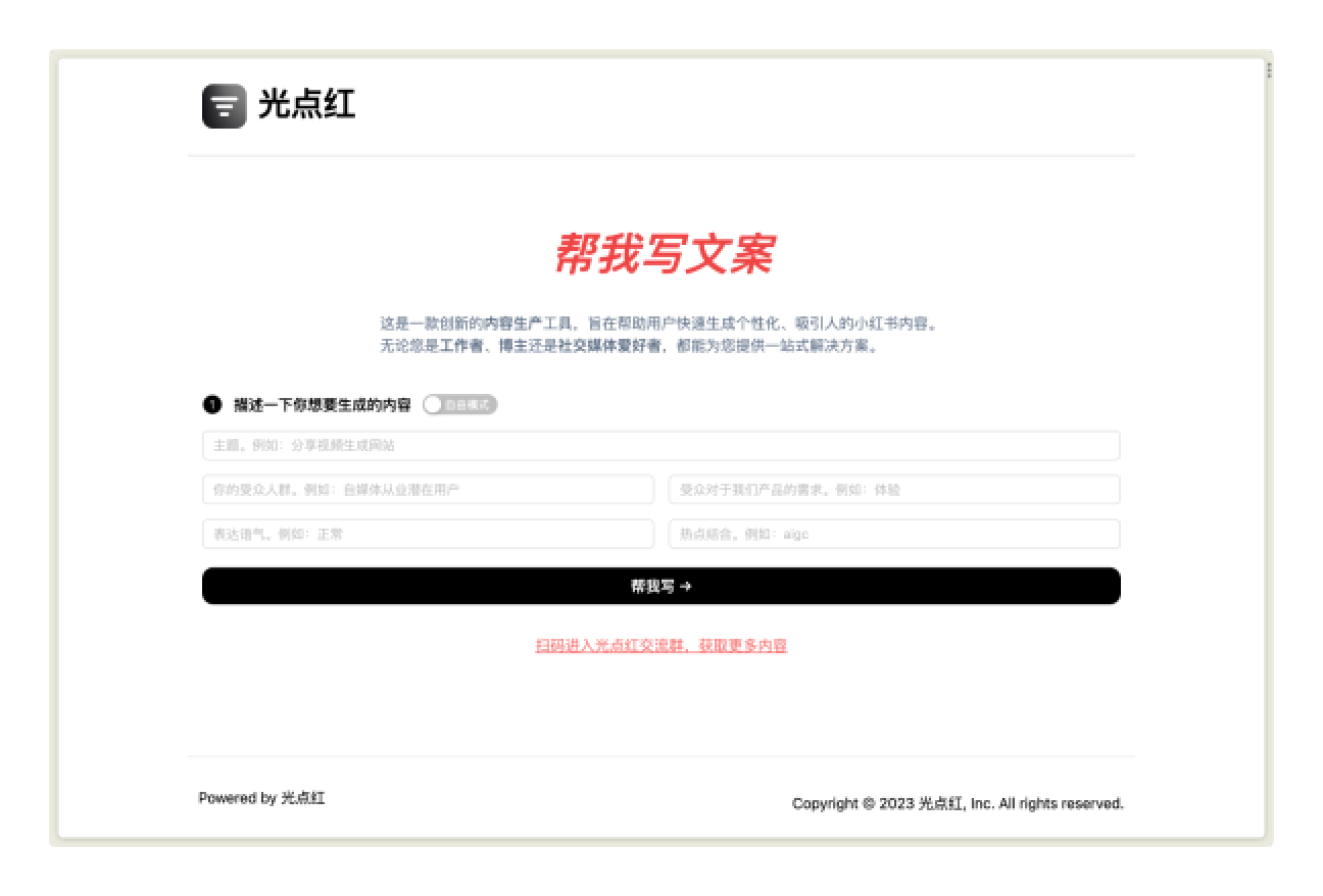 如果你第一次听说一个项目可以帮你自动用AI写爆款小红书,而且你正好在做小红书运营,你会不会立马去尝试一下?实际上我就是被这样的噱头吸引到这个产品上的。