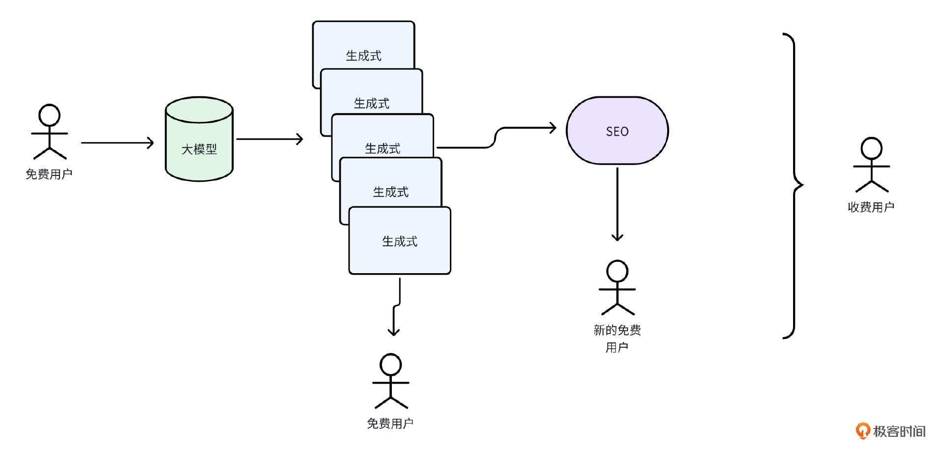 总结一下,如果可以做到大模型生产的内容可以复用,甚至可以带来新的用户,这部分成本自然被抵消,也就做到了和传统互联网项目一样,边际成本为零,这才是AI创业项目真正的完美模式。