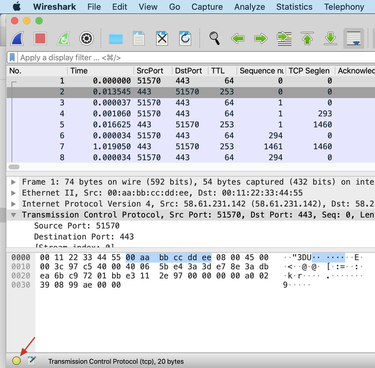**我们先来看一下客户端的报文情况。**打开抓包文件后,我一般会按部就班地做以下几件事: