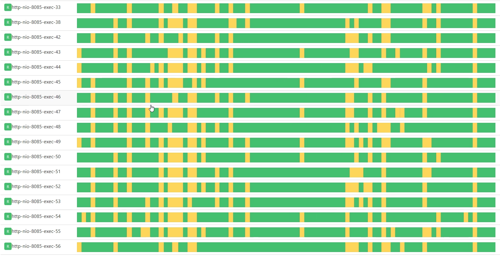 既然这时候压力已经把worker-3的CPU资源用到了70.78%,那我们就到这个应用中看一下线程把CPU用得怎么样。